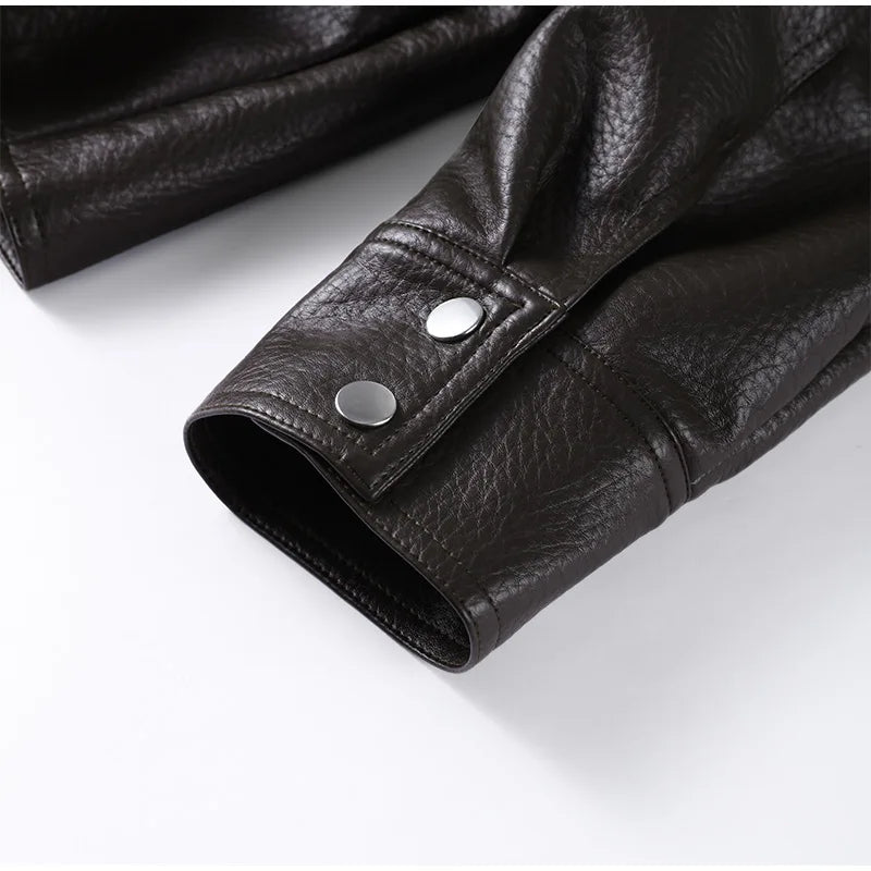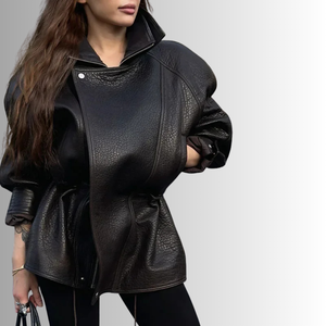 Drawstring Waist Leather Jacket